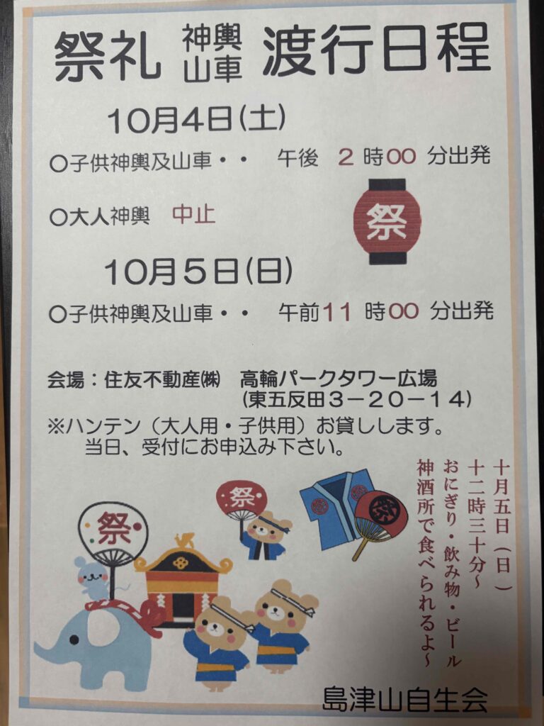 子供達みんなで(お神輿・山車)で町内回って、楽しい時間を過ごしましょう。