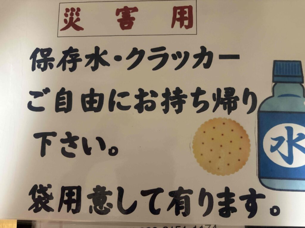祭禮広場にて(災害用)保存水クラッカ-ご自由にお持ち帰り下さい。